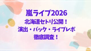 嵐のラストツアー「ARASHI LIVE TOUR 2026 We are ARASHI」がついに開幕しました。 嵐ライブ2026北海道初日セトリがSNSに続々と投稿され、演出やMCのエピソードまで、現地に行けなかったファンにもリアルタイム...