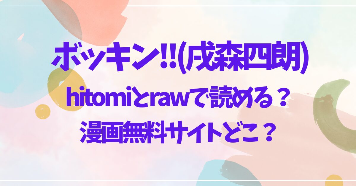 この記事では、戌森四朗先生の最新作「ボッキン‼」がhitomiとrawで読めるのかや、そのほかの漫画無料サイトはどこかについて解説しました。