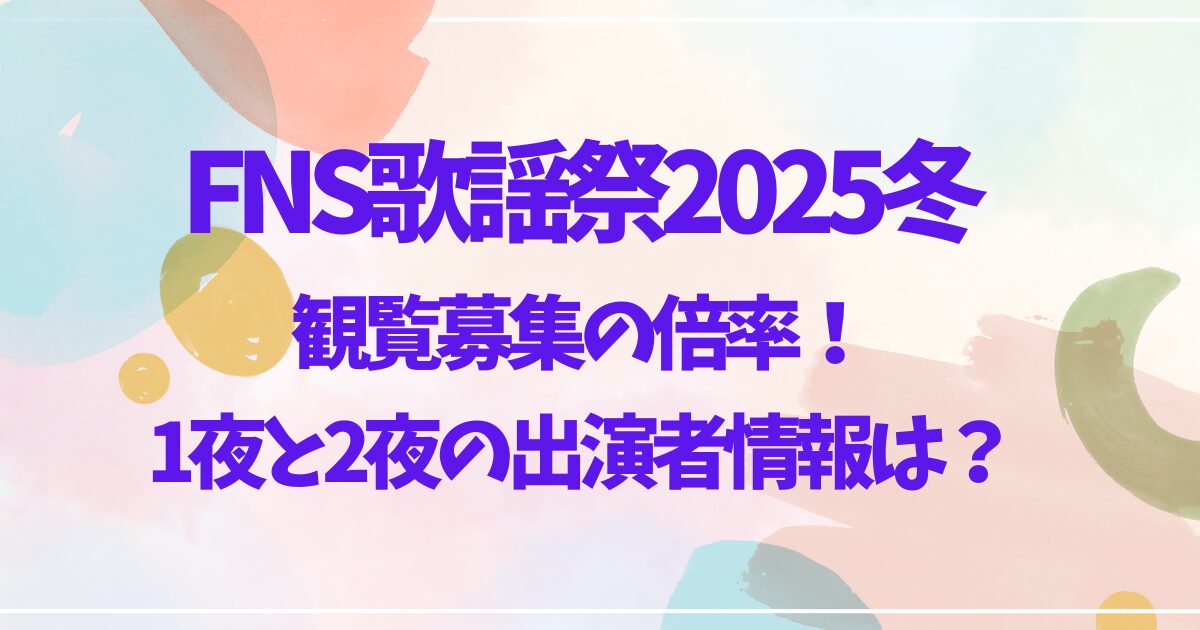 この記事では、FNS歌謡祭2025冬の観覧募集の倍率についてや、出演者情報について詳しく紹介していきます。