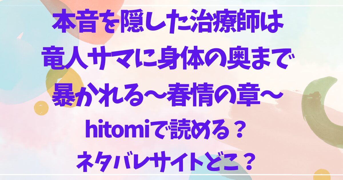この記事では、「本音を隠した治療師は竜人サマに身体の奥まで暴かれる〜春情の章〜」をhitomiなどの非公式サイトで読むことはできるのかや、ネタバレサイトについても調査していきます。