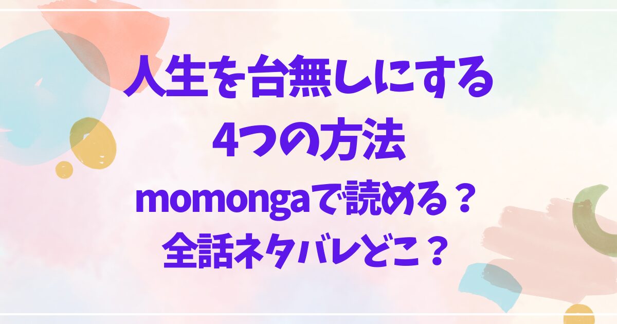 そこで『人生を台無しにする4つの方法』がmomongaで読めるのか、そして全話ネタバレを見れるサイトは存在するのかをまとめました。