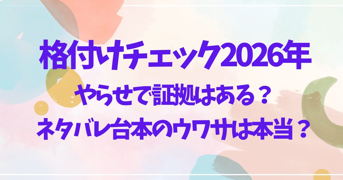 この記事では、2026年版の「格付けチェック」はやらせとなるのか、またその証拠はあるのか、ネタバレ台本のウワサは本当なのかについて徹底的に調査していきました。