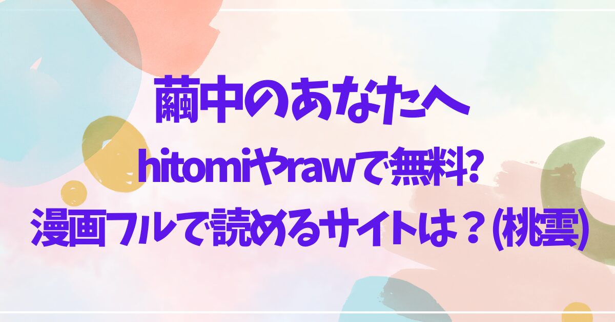 繭中のあなたへhitomiやrawで無料?漫画フルで読めるサイトは?(桃雲)