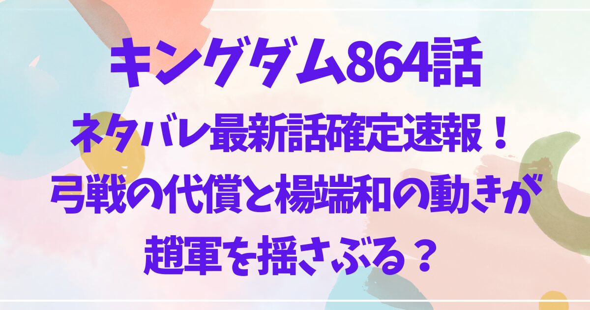 キングダム864話は、863話で描かれた弓戦の「結果」を断定する回ではなく、その影響が各陣営にどう波及していくのかを描く回になると考えられます。