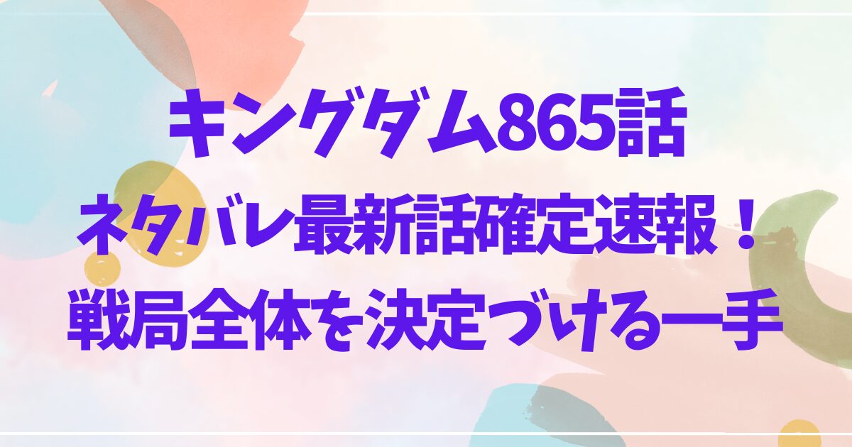 未だ正式に公開されていない「キングダム」865話ですが、最新の考察では次のような流れが濃厚です。
