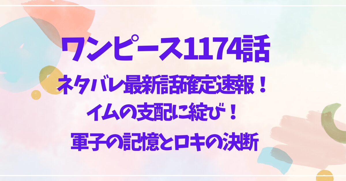 ワンピース1174話ネタバレ最新話では、イムの支配にほころびが生まれ始める可能性があります。
