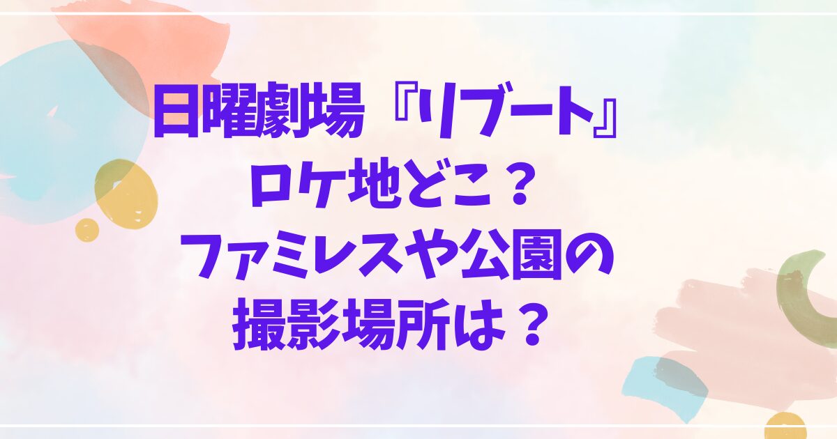日曜劇場『リブート』のロケ地が気になっている方のために、この記事では話数別に撮影場所をまとめました。