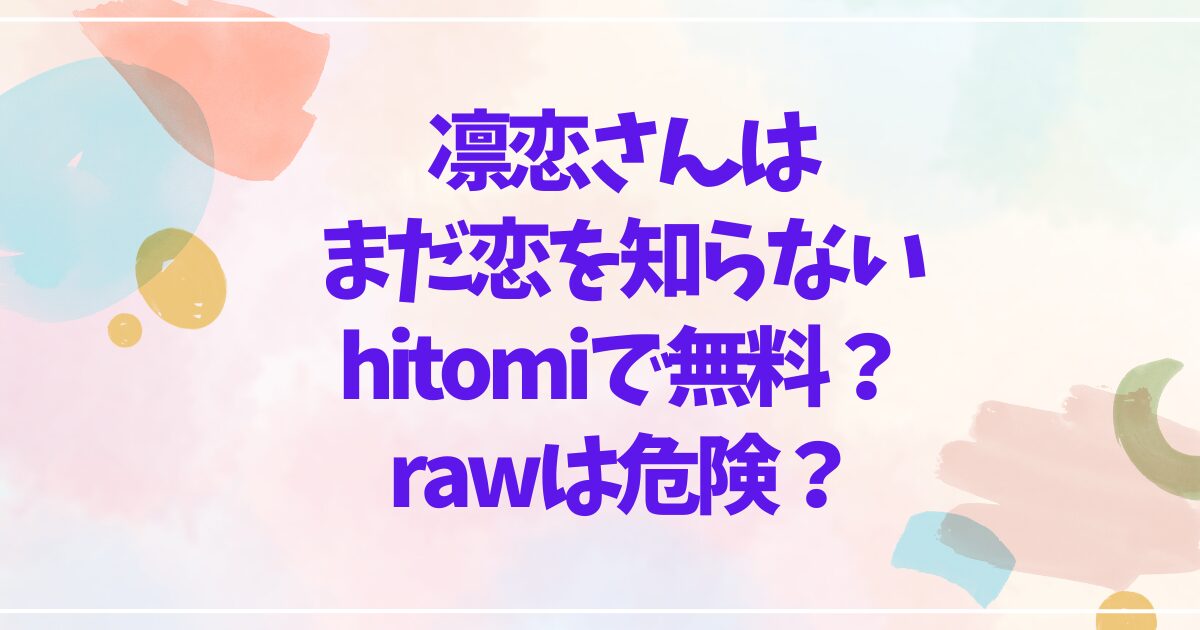 凛恋さんはまだ恋を知らないhitomiで無料?rawは危険?安全な読み方まとめ