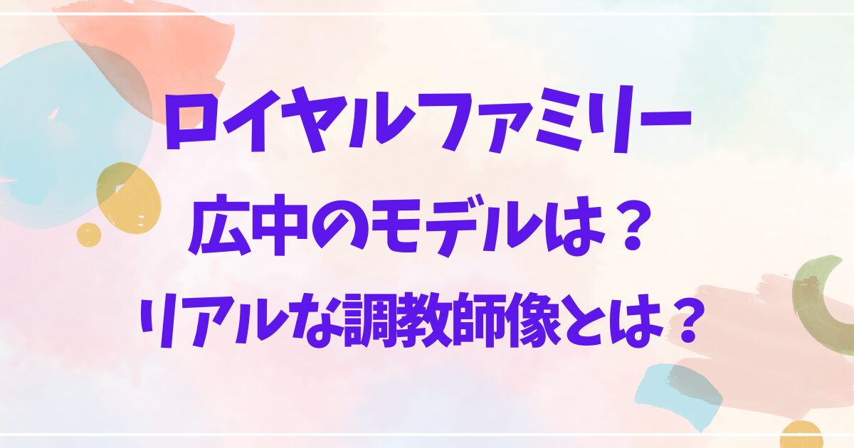 『ロイヤルファミリー』に登場する調教師・広中には、特定のモデルが実在するという情報はありませんでした。