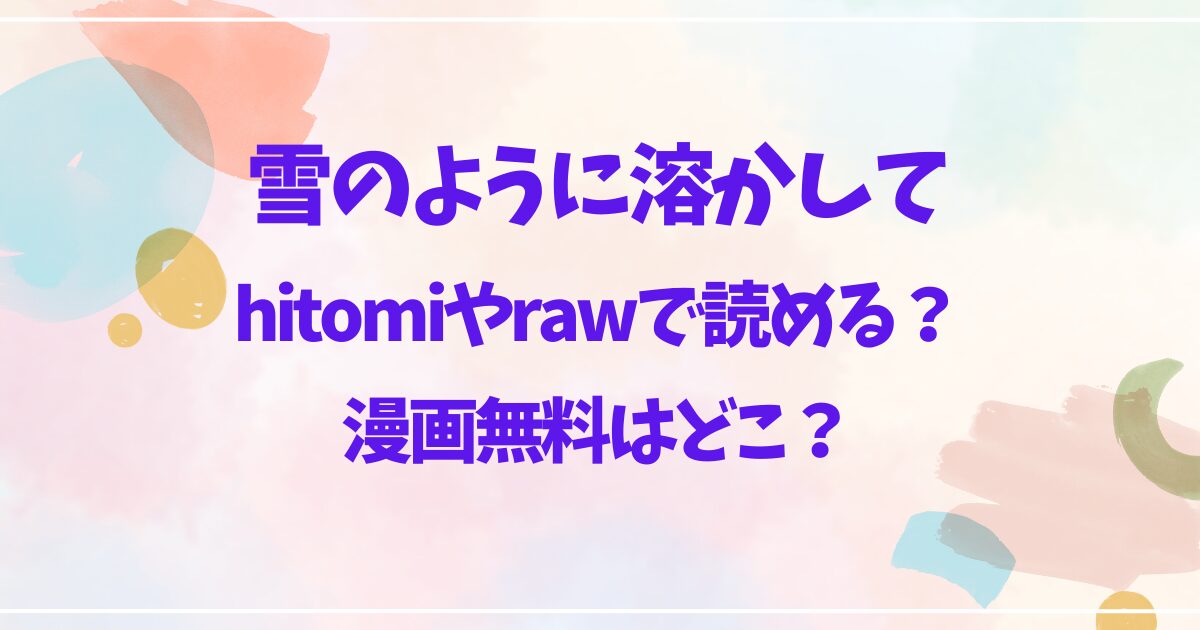 この記事では、『雪のように溶かして』はhitomiやrawで読めるのか、そして無料で試し読みできる場所をまとめました。