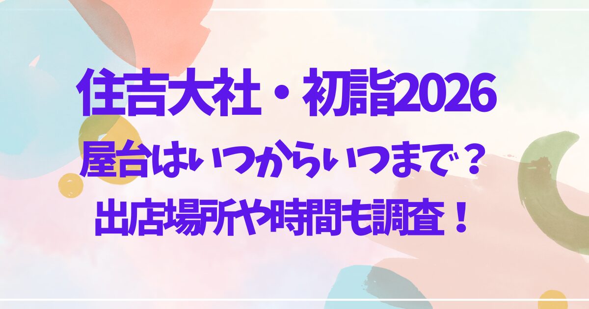 この記事では、2026年住吉大社の初詣の屋台はいつから開店し、いつまで営業しているのかや、出店場所や時間について詳しく解説してきました。